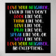 Ama a tu vecino, aunque no miren, piensen, amen, oren, hablen o voten como tú. Ama a tu vecino, sin excepciones. Negrita y colorida con fondo negro y letras de arcoiris para promover la diversidad, igualdad e inclusión de todas las razas y afiliaciones políticas. Gran manera de compartir un mensaje de amor y tolerancia en tu escuela, aula, oficina o en cualquier lugar para promover el libre pensamiento y la mente abierta, no sólo de palabra sino de hecho.