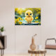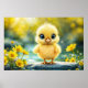 Póster Amarillo amarillo brillante azul de pollo con ojos