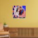 El príncipe William y la princesa Catherine -Duke y Duquesa de Cambridge- están visitando California del 8 de julio al 10 de julio de 2011 para realizar un tour oficial. Este poster tiene banderas estadounidenses y británicas, con el famoso beso en el balcón del Boda real en el centro. Dice: A EEUU le encantan WILLS & KATE.