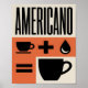Simplify your morning routine with this bold Americano coffee art print. Inspired by minimalist Swiss graphic design and Bauhaus aesthetics, this poster visually deconstructs the classic recipe: one shot of espresso plus hot water equals the perfect long coffee. The layout features striking, tall condensed typography and high contrast icons set against a vibrant orange and cream color block background. It is the perfect modern decor statement for a home coffee station, a minimalist kitchen, or a trendy cafe looking for a splash of graphic color.