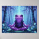 This whimsical poster features a serene purple frog meditating in a glowing, enchanted forest - whimsical fantasy art with crystal accents, soft light, and mystical atmosphere.