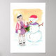 poster de amigos de invierno para bebés decoración de guardería. Ilustrado a mano y acuareado de una linda chica y su amiga
