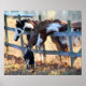 Pintura digital de una foto de V.L. Himmelberger de caballos y una reunión de cabras cerca de una valla.