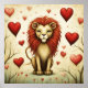 Un pequeño y adorable león y corazones.