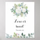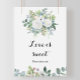 Esta señal de amor de eucalipto tropical es perfecta para una ducha de boda de destino. El diseño presenta rosas deslumbrantes ilustradas en púrpura, blanco, azul y rosa, anidadas en un hermoso ramo de hojas verdes de eucalipto.