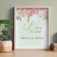 Elegante letrero para mesa de favores con la leyenda love is sweet, enjoy a treat. Este diseño femenino de acuarela tiene flores rosas y doradas con un toque de vegetación. Cuenta con elegante tipografía y letra a mano en dorado, con "Amor" escrito a mano en caligrafía circular. Por favor, explore mi tienda para encontrar artículos que coincidan.