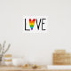 Este divertido diseño presenta la palabra amor con un lindo corazón arco iris.