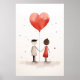 Un ilustracion minimalista y reconfortante de una pareja que se toma de la mano, conectado por un globo rojo con forma de corazón que flota sobre ellos. El diseño sencillo, la textura acuarela y los toques suaves de color sobre un fondo blanco le dan un toque suave y onírico a la obra de arte, simbolizando el amor y la unión de una manera pura e inocente.