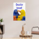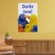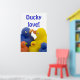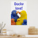Dos patos de goma enamorados. Un lindo poster con un beso con patos azules y amarillos. Tres pequeños patos con su papá y mamá celebrando su feliz familia o quizás un recién nacido. Poster personalizado que puede personalizar con su propio mensaje de texto. Perfecto para el que le encanta celebrar su aniversario, embarazo, recién nacido o bebés.