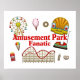 Featuring all things fun at the amusement park! A roller coaster, bumper cars, spinning ride, ferris wheel popcorn, cotton candy, soda pop, pretzel, arcade token, and colorful snow cone.