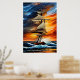 Póster Añadir mensaje, barco de vela en olas al atardecer