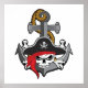Calavera pirata y huesos cruzados sobre un ancla náutica.