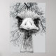 Un boceto digital en blanco y negro de un emu