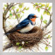 El ilustracion detallado de una golondrina en su nido sobre una rama florida transmite un ambiente sereno y natural.