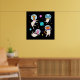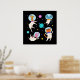 Un poster con una imagen de animales astronautas en cascos visibles flotando en el espacio. Girafa, ratón, gato y conejo. Tan adorable y divertido.