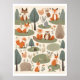 Animales de bosque como zorros, búhos y conejos, que crean un ambiente encantador inspirado en el bosque, con un fondo rosa claro y bonitos colores boho, adecuados para la guardería y la sala para niños. Disponible como poster físico y digital.