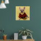 Esta linda foto de Getty Images muestra un adorable Bulldog francés con una camisa y pantalones.