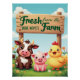 Un toque de encanto rústico para su día con un diseño adorable con una vaca, un cerdo y un pollo sonrientes bajo el rústico rótulo "Fresco de la granja". Perfecto para regalos de granja, etiquetas de mercado, ropa infantil y decoración de cocina. El texto editable le permite personalizarlo para su propia granja, nombre familiar o puesto de mercado. ¡Genial para los agricultores, comerciantes o amantes de los animales!