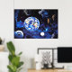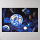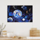Con una vista impresionante de un paisaje espacial con animales en el espacio flotando y la tierra en el fondo. Esta es una hermosa foto en este poster