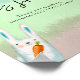 Invitaciones a duchas de bebé neutrales en género. Ilustracion de una acuarela de los animales de la zona: zorro con arándano en patas, oso con frambuesa, erizo con pera, conejo con zanahoria. El fondo de las acuarelas es multicolor.
