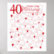Una maravillosa idea de regalo para el 40º aniversario. Este fabuloso póster contiene 40 corazones para que los llenes con 40 mensajes cortos de amor y buenos deseos. Perfecto como regalo especial de aniversario 40 para padres de parte de la familia, o utilízalo en una fiesta de boda de rubí como libro de firmas.