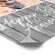 Póster personalizado de collage de 2 fotos para el primer aniversario de bodas. Cuenta con una imagen de fondo de madera gris y se puede personalizar con las iniciales de la pareja o cualquier texto personalizado para celebrar su primer año de casados.