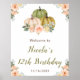 Cartel de bienvenida de cumpleaños rústico con calabazas de melocotón y verde sabio y arreglos florales. Perfecto para un cumpleaños otoño. Las palabras se pueden cambiar para adaptarlas a sus propios detalles o requisitos
