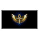 El tobillo egipcio dorado con alas estampadas y brillantes sobre un fondo negro. Símbolo mágico.