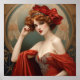 Anna Marie Una Mujer Art Deco retrata un bello destello. Ella lleva un hermoso color de ardor que se corresponde con su pelo. Es una gloriosa combinación con su vestido adornado con oro. Lleva un fascinador en su cabello que está joyado y coincide exactamente. Detrás de ella hay un diseño Art Decó en la pared. Un diseño fabuloso.
