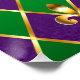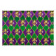 joyas, fondo del Mardi Gras de rhombus violeta y verde, lirios dorados decorados.