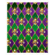 joyas, fondo del Mardi Gras de rhombus violeta y verde, lirios dorados decorados.