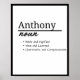 Póster Anthony, Definición de Nombre Personalizado Niño