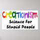 In an appropriate crayon font with bright colors the word "Creationism" stands out above the smaller words "science for stupid people."