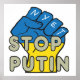 El diseño anti Putin muestra un puño ucraniano en los colores de la bandera de Ucrania con "Nyet" escrito en los dedos más las palabras "Stop Putin" (Detengan a Putin).