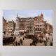 Escena de la calle del antiguo Amsterdam Holland en la Dam c1900 con monumentos, tranvías y quiosco de periódicos antiguos. Impresión antigua restaurada digitalmente.