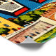 Sumérgete en la ciudad romántica de Verona con esta ilustración estilo postal retro. “VERONA” aparece en letras mayúsculas negritas llenas de imágenes en miniatura de la Arena Romana, el Balcón de Julieta y el Puente Castelvecchio. El fondo muestra la Arena y calles animadas en un colorido estilo vintage. Perfecto para celebrar la ciudad del amor de Italia.