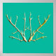 Un rústico par de cuerdas doradas que se asemejan a ramas de árboles otoñales descansa sobre un fondo turquesa profundo.