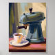 Antique Coffee Machine Latte Watercolor Poster Painting