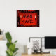 Arte de la Cueva del Hombre en colores rojo a negro con antorchas iluminadas a cada lado. Hombre de arte para su cueva. Presenta una pared de una cueva con la firma de los primeros hombres similar a la pintura de un hombre de una cueva. Arte para una vivienda subterránea o un habitante donde los hombres cuelgan y hacen cosas masculinas