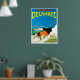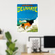 Anuncio de un coche Delahaye con un naranja de carreras de un barco rápido a la orilla. Un gráfico colorido con un estilo dramático. Balanceamos cuidadosamente y restauramos los colores originales con pliegues plegables y defectos corregidos digitalmente. Los posters tienen una frontera para facilitar un marco conveniente. Comparar.