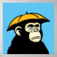 Imagen divertida de un chimpancé usando un gorra de paraguas.