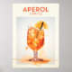 Poster Aperol Spritz con ilustracion acuático de diseño retro.