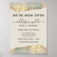 Póster de Apertura Comercial Salón de Belleza Glam Glitter Holográfico. Este diseño presenta una fuente de estilo de letra script clásico y elegante sobre un hermoso fondo brillante iridiscente moderno. Perfecto para un salón de belleza, estilista de cabello, artista de maquillaje o cosmetólogo.