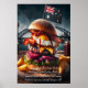 Satisfaga tu apetito del tamaño de Ayers Rock con esta deliciosa hamburguesa Outback. Una gruesa parrilla de carne de canguro, a la perfección jugosa, está coronada por un huevo frito, rebanadas vibrantes de remolacha, bacón crujiente y una generosa mancha de salsa de asado ahumada, todo ello apilado en un rollo de damero tostado. Una pequeña bandera australiana le da un toque de encanto a Outback, mientras que un telón de fondo de Sydney completa esta experiencia culinaria australiana