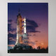 Una vista de la mañana temprano del Pad B, Launch Complex 39, Kennedy Space Center, que muestra el vehículo espacial ASTP Apollo/Saturn 1B sobre la plataforma durante los preparativos de lanzamiento del Proyecto de Ensayo Apolo-Soyuz. Los objetivos principales del Proyecto de Prueba Apolo-Soyuz fueron evaluar el acoplamiento y desacoplamiento de una nave espacial Apolo con un Soyuz, y determinar la adecuación de las luces de orientación a bordo y el objetivo de anclaje; evaluar la capacidad de los astronautas y cosmonautas para realizar transferencias intervehiculares de tripulaciones y la capacidad de los sistemas de naves espaciales para apoyar las transferencias: evaluar la capacidad del Apolo mantener la actitud-retenida el control de los vehículos acoplados y la realización de maniobras de actitud; medir cuantitativamente el efecto de la ingravidez sobre la altura de las tripulaciones y el volumen inferior de las extremidades, de acuerdo con la duración de la exposición a cero g; y obtener datos de seguimiento de la navegación por relé y por satélite sincrónico directo para determinar su exactitud en la aplicación del diseño del sistema de navegación del transbordador espacial. Los objetivos se cumplieron con éxito y la misión fue considerada exitosa el 15 de agosto de 1975.