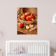 A timeless still life photograph of fresh apples in a rustic bowl, styled with warm tones and natural textures. Ideal for kitchen and dining room decor.