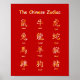 El zodiaco chino es una buena manera para que niños y adultos aprendan chino. Memoricé los nombres chinos de los 12 animales con otros niños en kindergarten y recuerdo las palabras y la secuencia de la vida. Todos los niños asiáticos deberían poder recitar esta lista de animales sin importar dónde vivan. Este diseño tiene los nombres de los 12 animales zodiacos en la parte delantera en caracteres chinos tradicionales con una guía de pronunciación en fonética de Pin Yin.