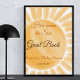 Cartel de libro de firmas de invitado de fiesta de bebé pintado con acuarela en colores amarillo, naranja, tema de sol con texto "aquí viene el hijo" se puede personalizar según tus necesidades. Perfecto para la celebración de la fiesta de bebé niño. Puedes encontrar artículos que coincidan en la colección de mi tienda PatternDigitPics.