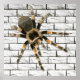 Affiche. Un mur de briques blanches. Une araignée mygale (Brachypelma smithi) est représentée comme si elle était posée sur ce mur. L'araignée a un corps poilu brun-gris avec des pattes orangées, donnant une impression de réalisme tridimensionnel