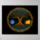 Un árbol astral cósmico de las extremidades y raíces de la vida se ramifica hacia afuera, simbolizando la interconexión o relación entre toda la creación. Al fondo, el Sol y la Tierra flotan en un mar de estrellas. El trabajo de línea decorativa representa capas de realidad y experiencia. Las viñas se envuelven alrededor del marco de madera 12 veces simbolizando los doce meses, signos astrológicos del zodiaco, y cuerpos celestes de nuestro sistema solar; Sol, Luna, Mercurio, Venus, Tierra, Marte, Júpiter, Saturno, Neptuno, Urano, Plutón, Eris.